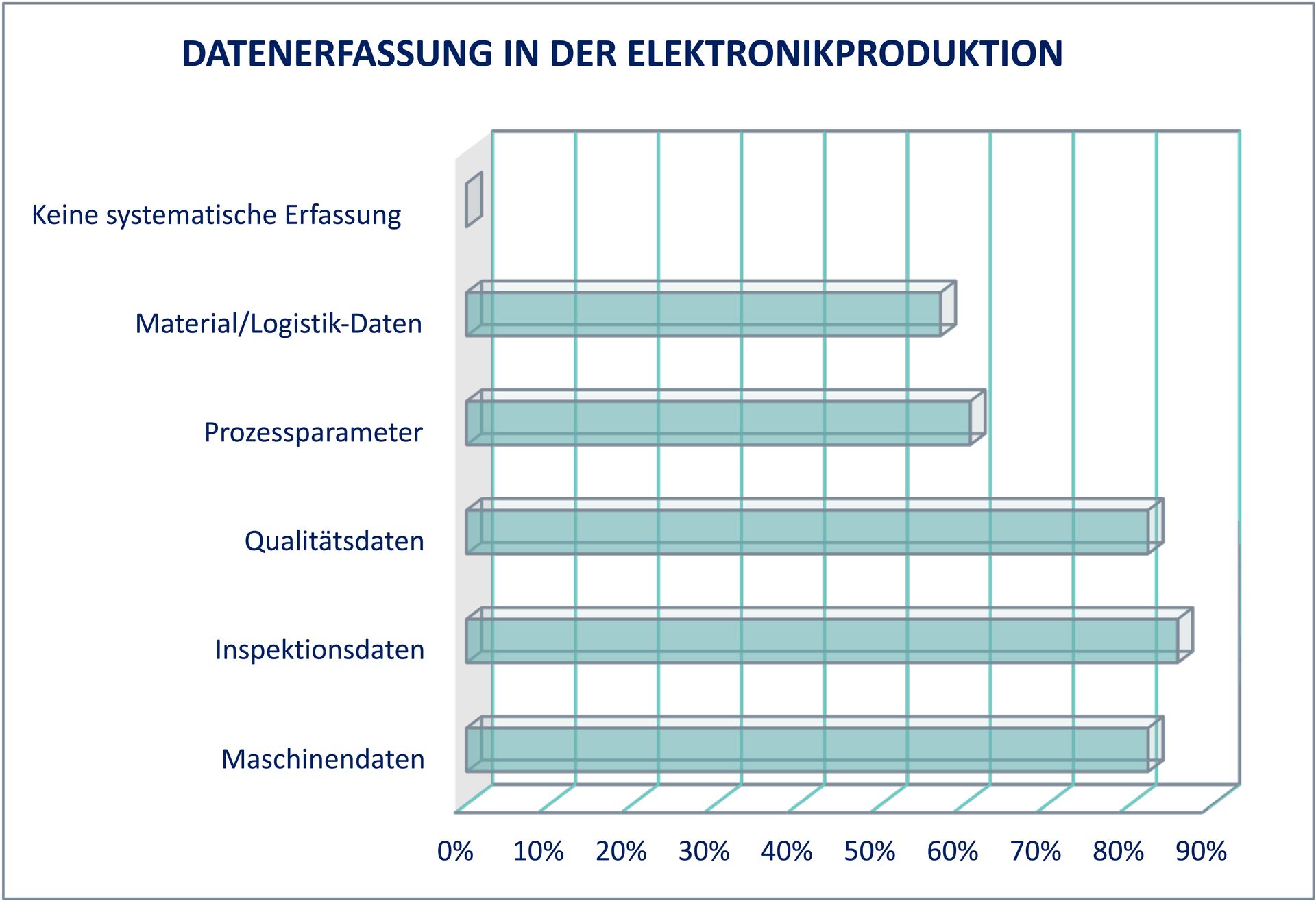 Die Umfrage zeigt deutlich: Die Grundlage für eine datengetriebene Produktion ist in den meisten Unternehmen bereits gelegt. Qualitäts-, Inspektions- und Maschinendaten werden von über 80 % der Unternehmen systematisch erhoben, oft schon seit mehr als drei Jahren (64 %).